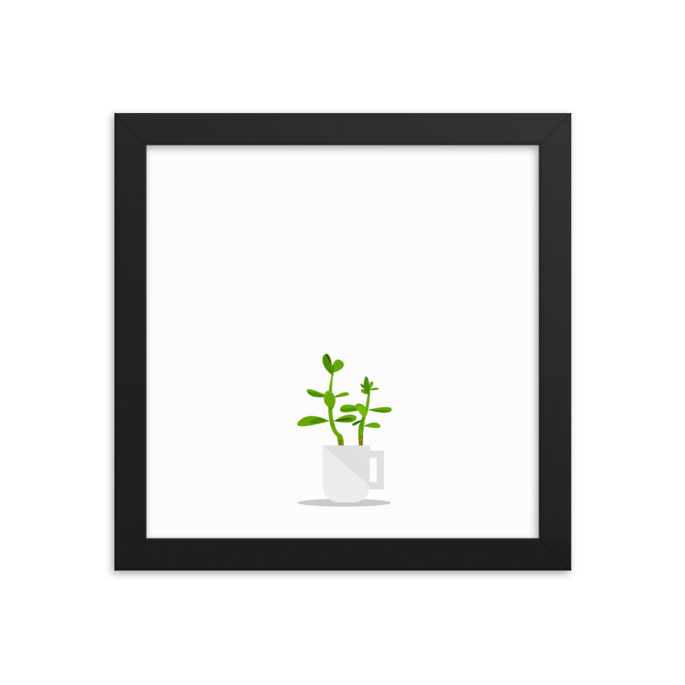 Jade Plant in Coffee Mug Illustration - Framed poster 10x10"